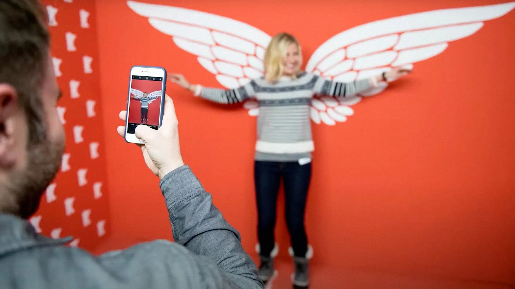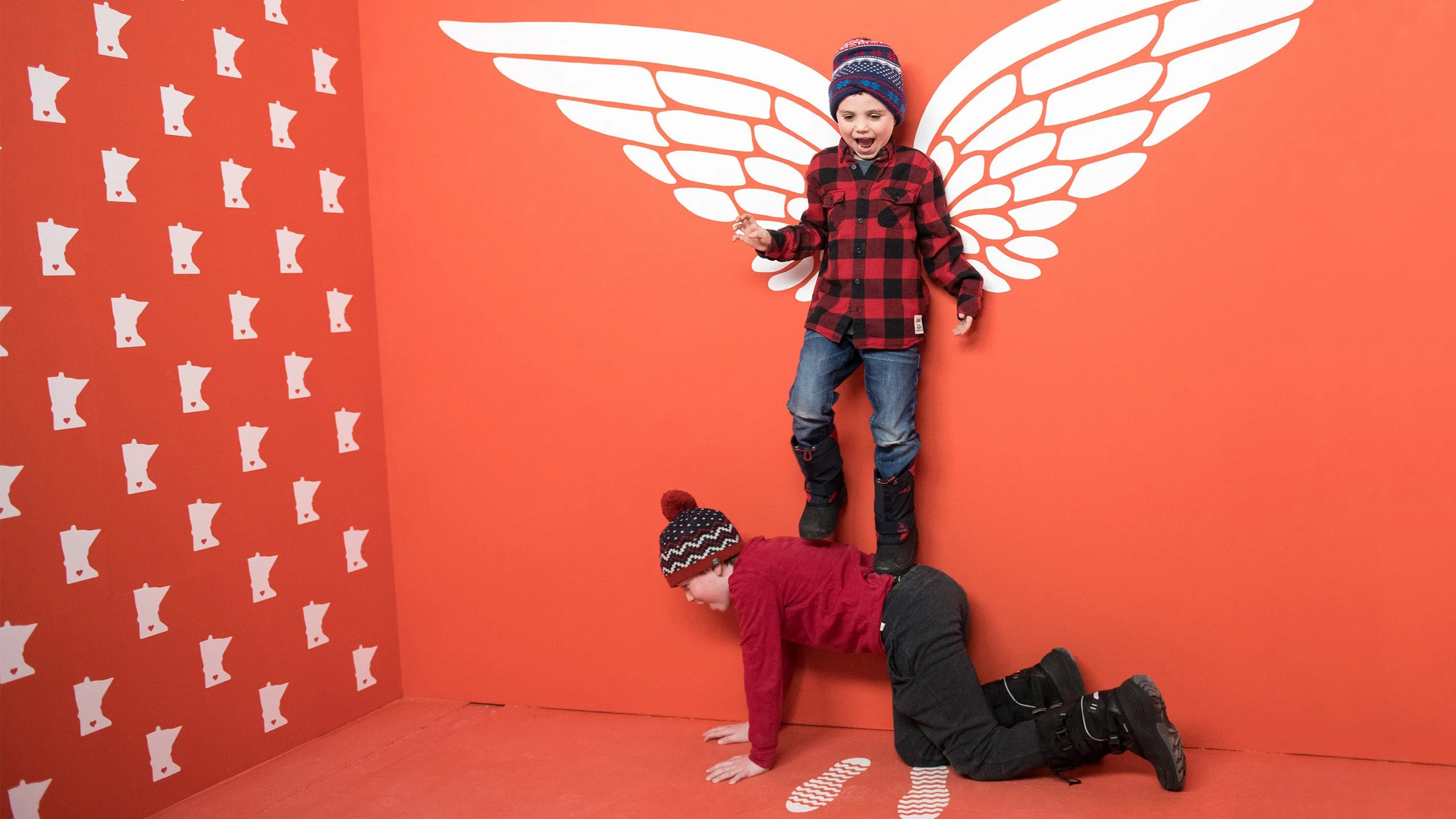 I had the opportunity to help create and hand-paint a fraction of the experience: the Red Wing wall. Showing off one of Minnesota’s most loved brands, we scaled up the famous wings logo and added touches such as the signature zig-zag design on the bottom of their boots for where your feet go, as well as side walls of a simple yet iconic MN state + a heart in the south pattern.